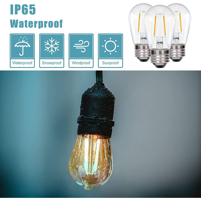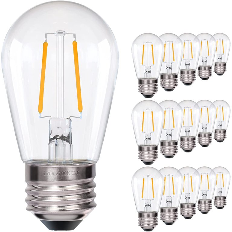 Brimax 25pack 2w S14 Led Edison Light Bulbs For Outdoor String Light Replacement Shatterproof E26 Medium Screw Base Non Dimmable 2700k 2w Equivalent To 11w 20w 25w Incandescent Bulb Amazon Com